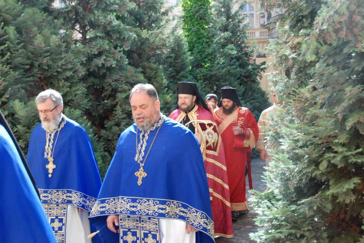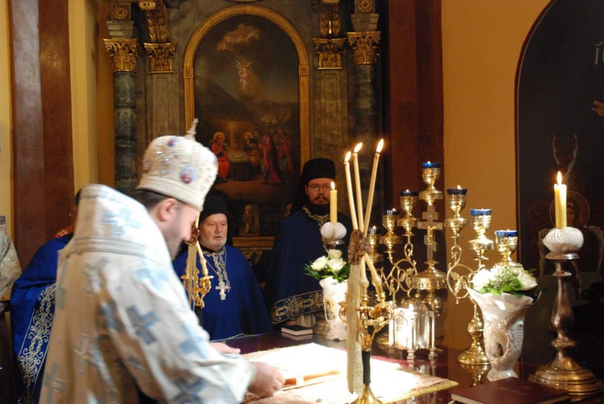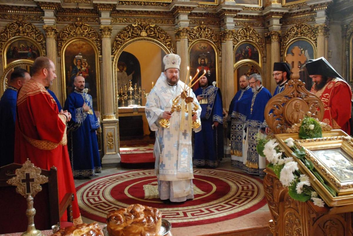 По окончанию Божественной литургии, был совершен крестный ход вокруг храма, а затем и чин резания Славского колача и освящения праздничной кути, после чего обратился словами благодарности и приветствия епископ моравичский Антоний.