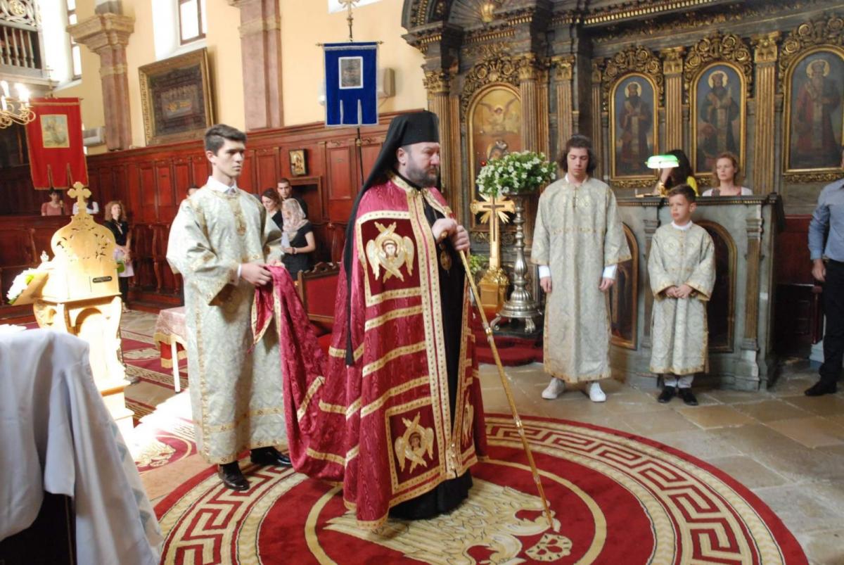 У току свете Литургије, Преосвештени Епископ г. Антоније је по благослову Епископа будимског г. Лукијана произвео старешину храма, протонамесника Зорана Остојића у чин протојереја.