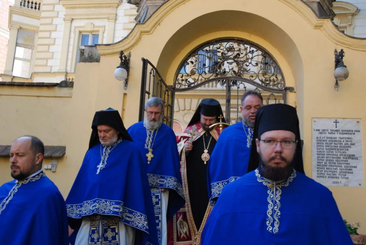 На позив Епископа будимског и администратора темишварског г. Лукијана, а по благослову Његове Светости Патријарха српског г. г. Иринеја, свету архијерејску Литургију у храму Светог Георгија у Будимпешти, поводом прославе храмовне славе, служио је Преосвештени Епископ Моравички г. Антоније, викар Патријарха српског и старешина Подворја Српске Цркве у Москви.