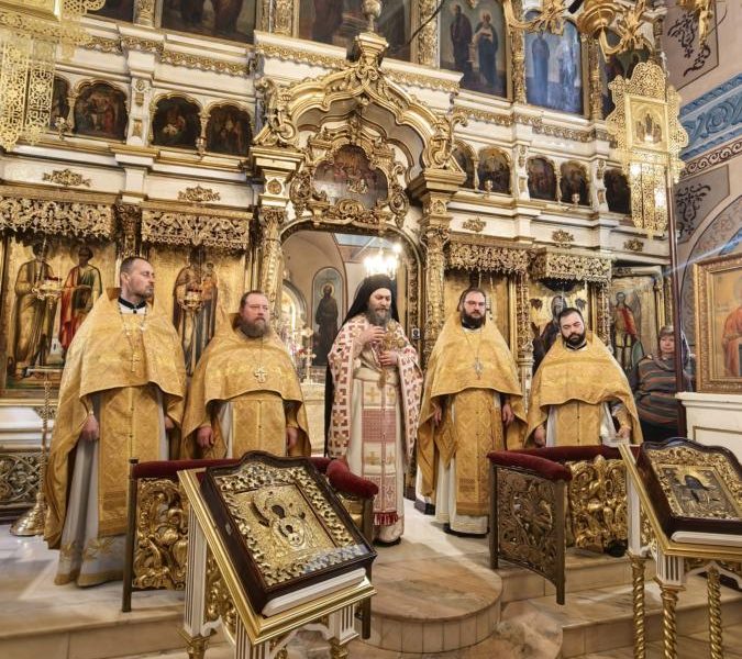 Свету Литургију у Недељу о митару и фарисеју, 1. фебруара 2026. године, у храму Светих апостола Петра и Павла у Подворју СПЦ у Москви, служио је архимандрит Методије, игуман свете царске обитељи Хиландара на Светој Гори.